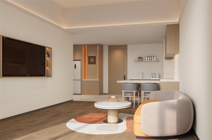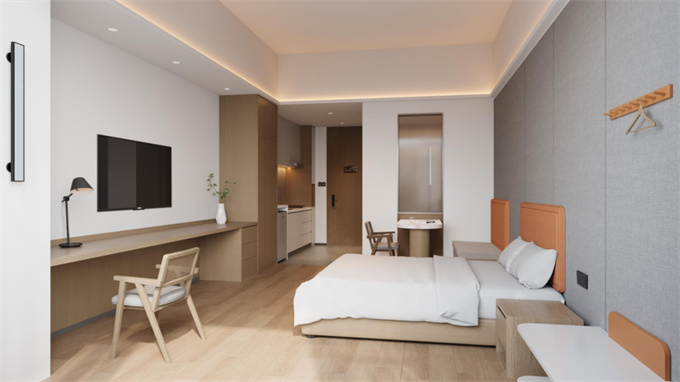 專為客戶來訪接待、培訓、研討而設的星級酒店式公寓,提供全系精裝商務標間及豪華套間,并設有酒店式洗衣房,旨在為來訪人員提供舒適的居住體驗。